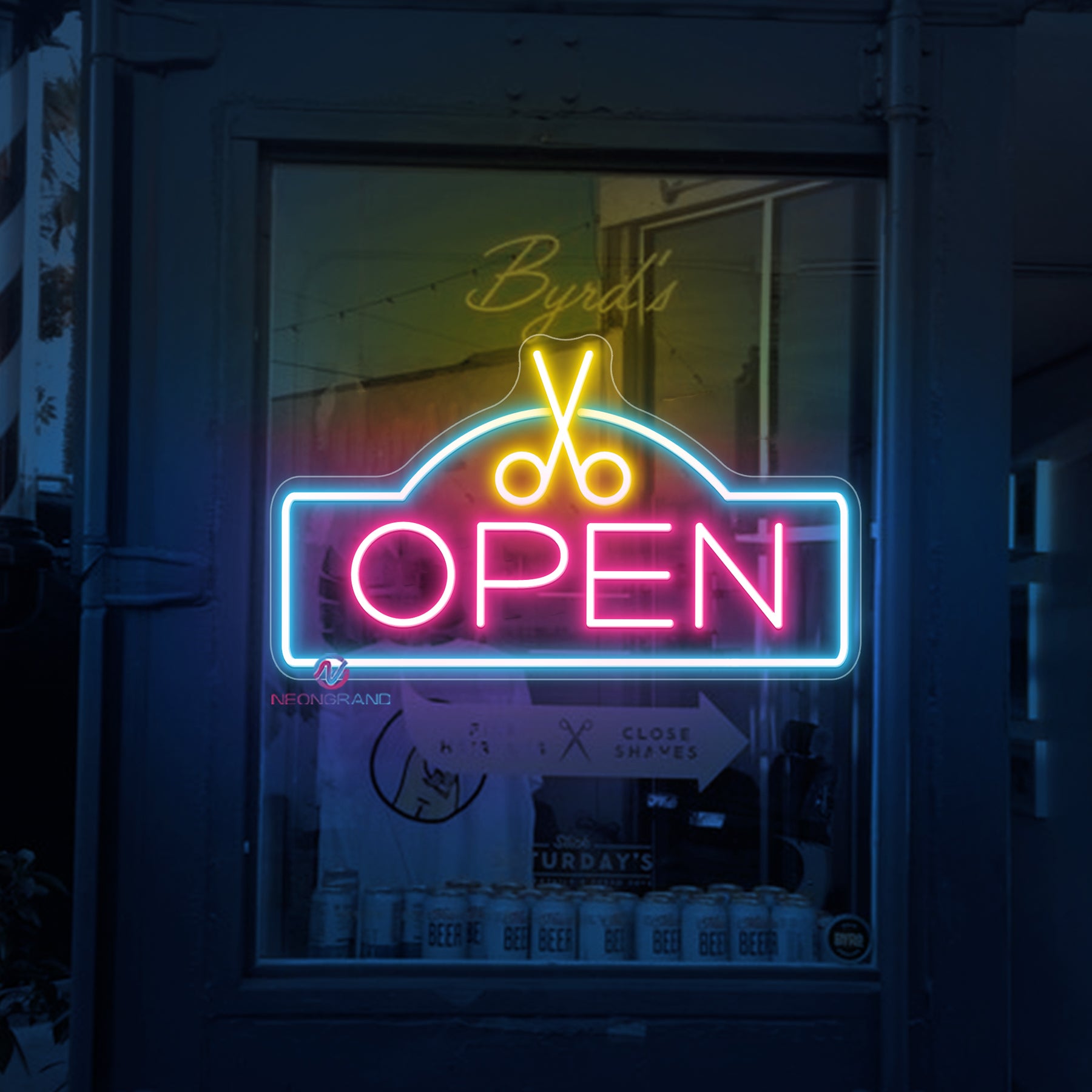 Barber Open Neon Sign shines with timeless barbershop charm, letting clients know it’s time for a fresh cut and clean style. With its clear message and inviting glow, this open neon sign adds a professional yet friendly touch to any barber shop or grooming studio. Easy to spot and hard to miss, the Barber Open Neon Sign creates a welcoming atmosphere that draws customers in. Light it up and let your chair stay busy all day.