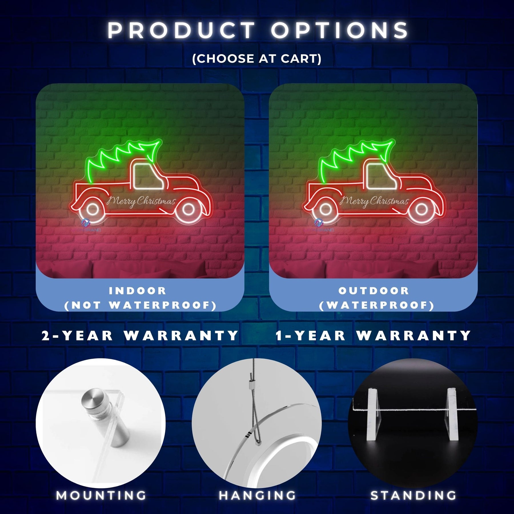 Our products come with detailed installation instructions and all necessary hardware. The standard package will come with an installation kit and have pre-drilled mounting holes in the neon sign. We only send hanging chain if you request them.