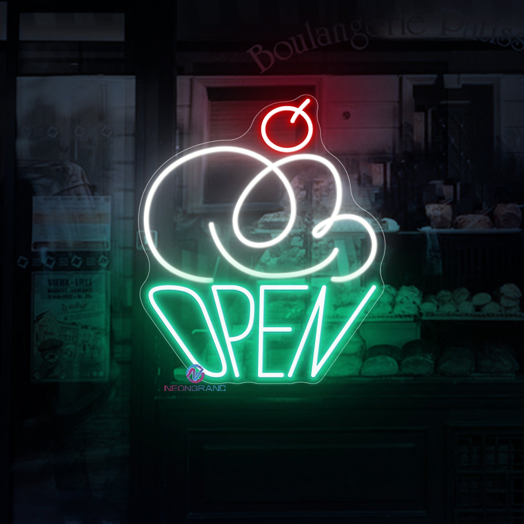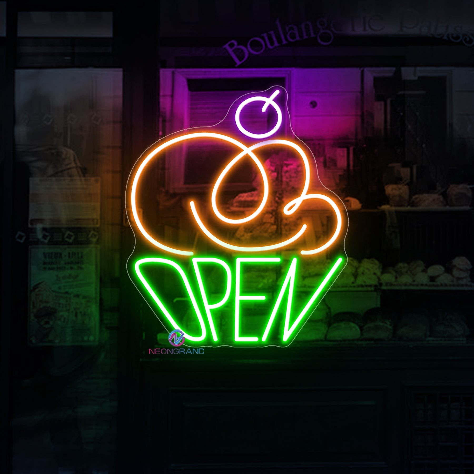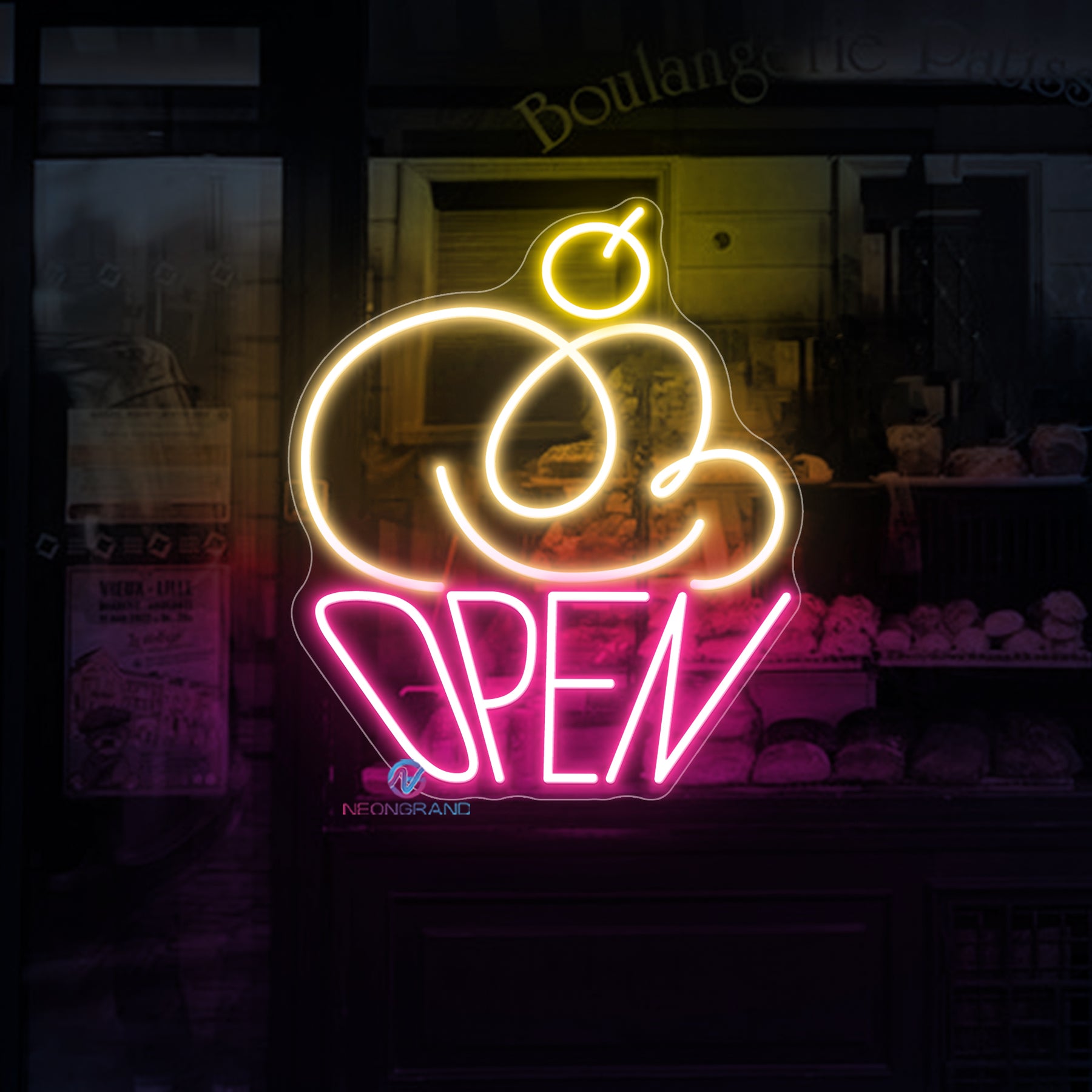 Cupcake Open Neon Sign Bakery Storefront LED Light For Cafe