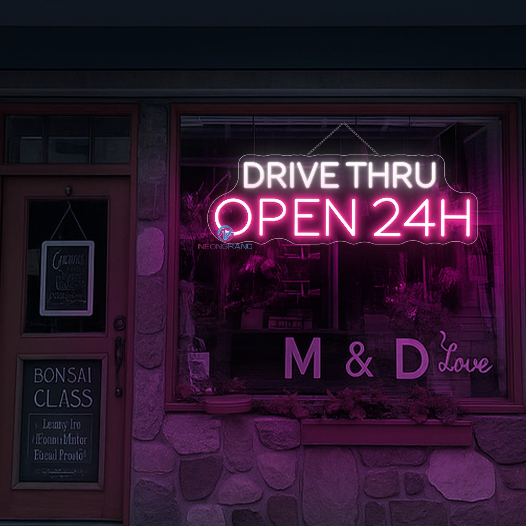 Drive Thru Open 24H Neon Sign Storefront LED Light