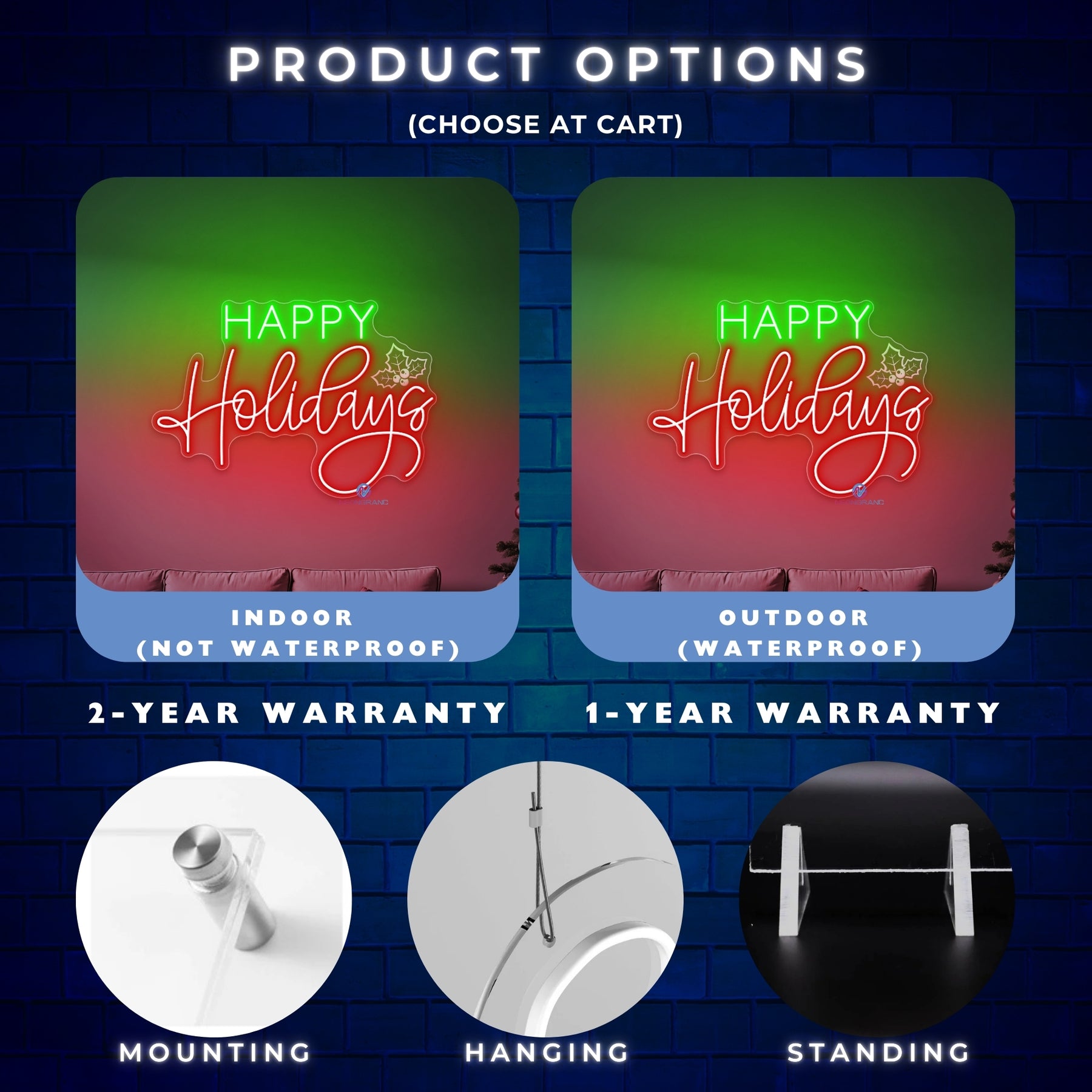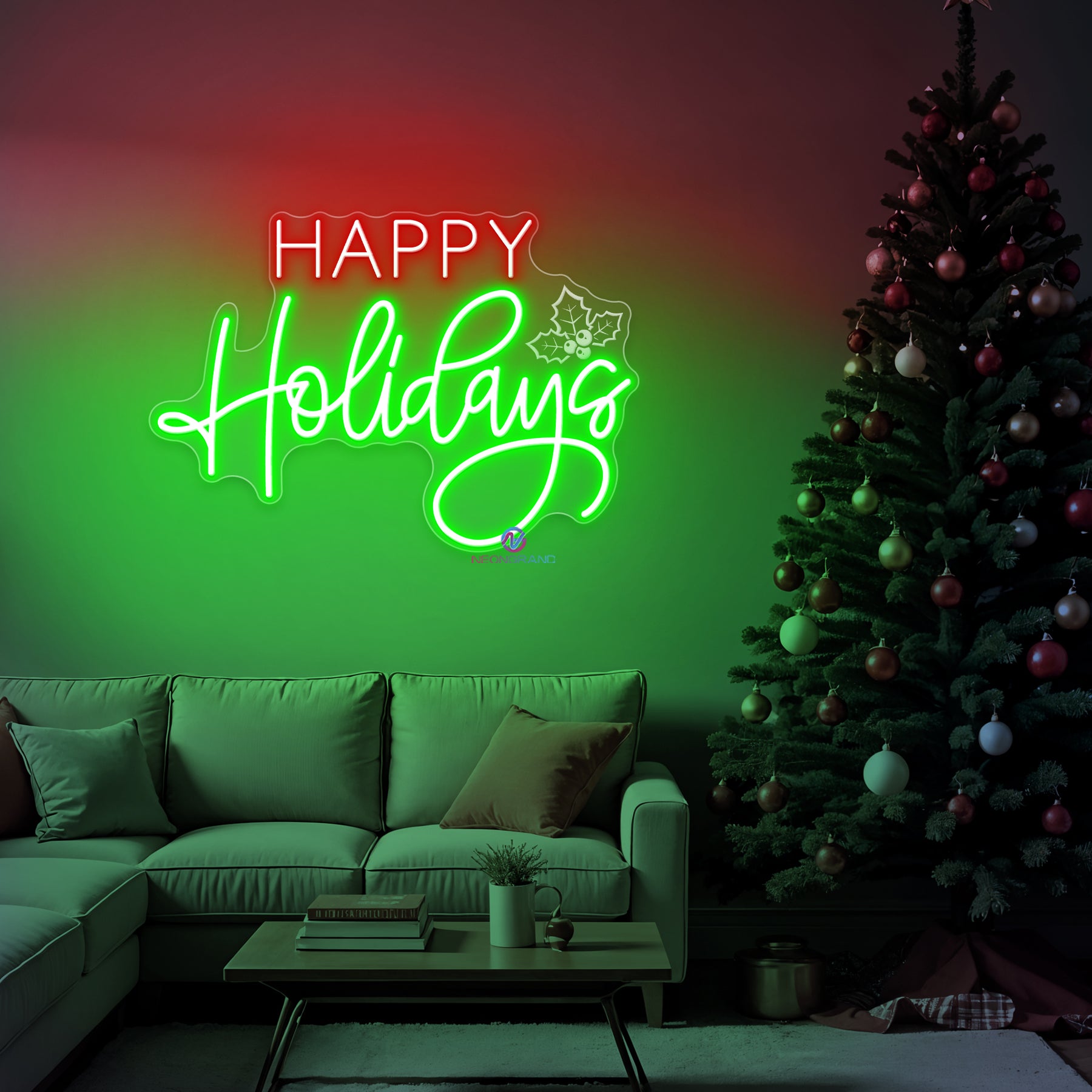 Happy Holidays Neon Sign glows with the joyful spirit of the season, creating a welcoming atmosphere filled with warmth and celebration. Designed to complement any Christmas decor, it brings a touch of festive cheer to living rooms, entryways, shop displays, or holiday gatherings. With its bright, cheerful message, the Happy Holidays Neon Sign instantly sets the mood for togetherness, joy, and seasonal magic. Light it up and let your Christmas holiday shine with holiday happiness.