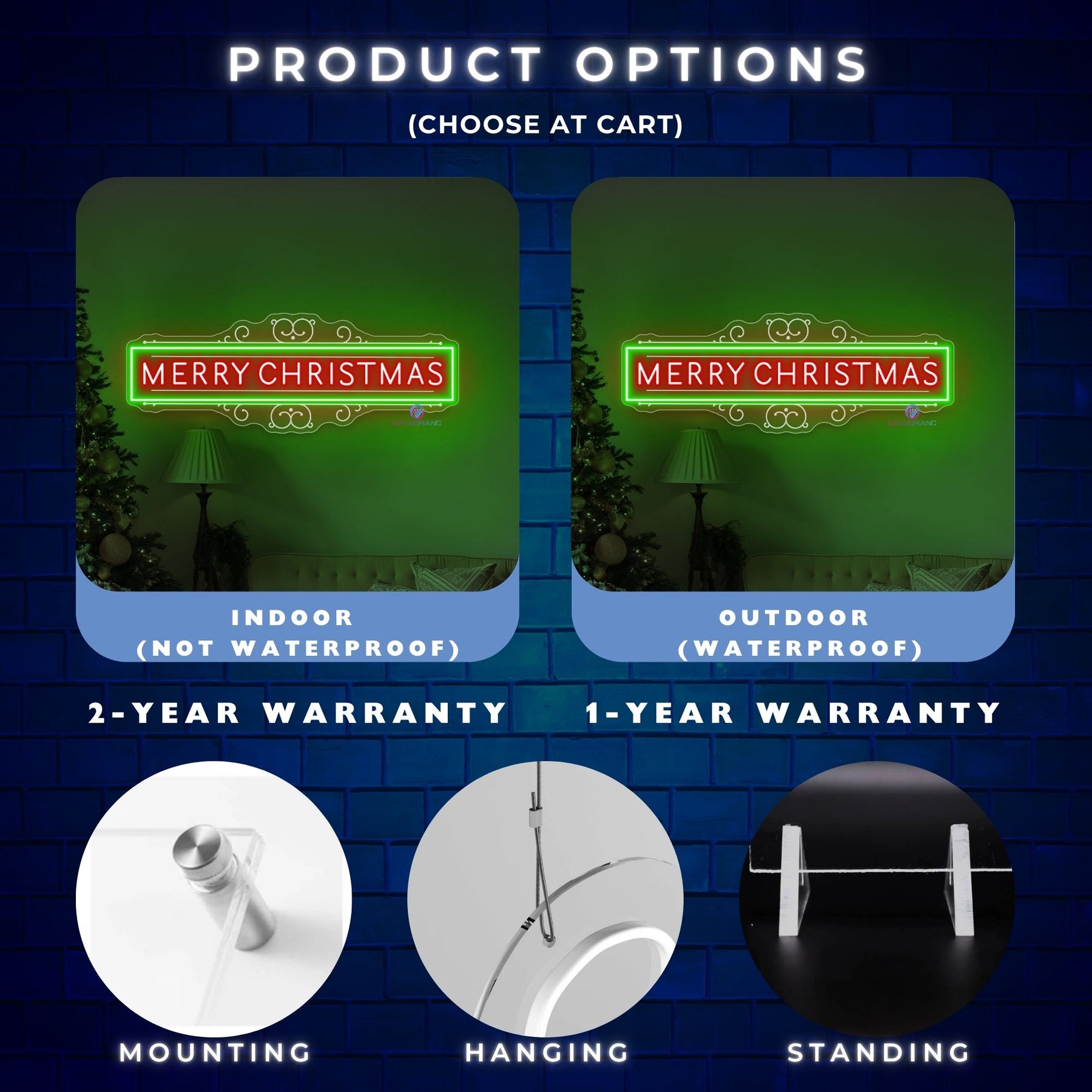 Our products come with detailed installation instructions and all necessary hardware. The standard package will come with an installation kit and have pre-drilled mounting holes in the neon sign. We only send hanging chain if you request them.