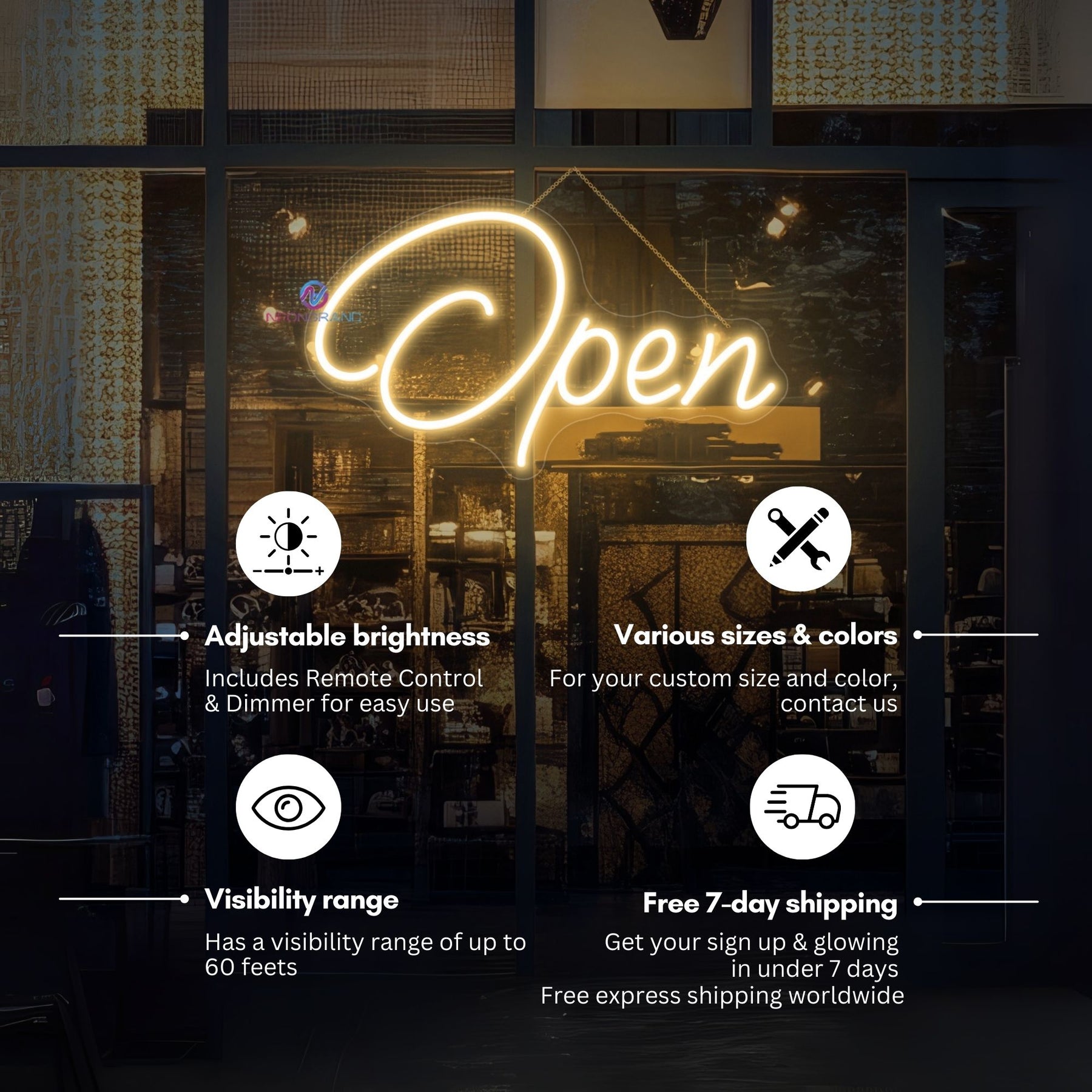 “This open neon sign has transformed my store! It's incredibly bright and visible from far away, bringing in more foot traffic than ever before.