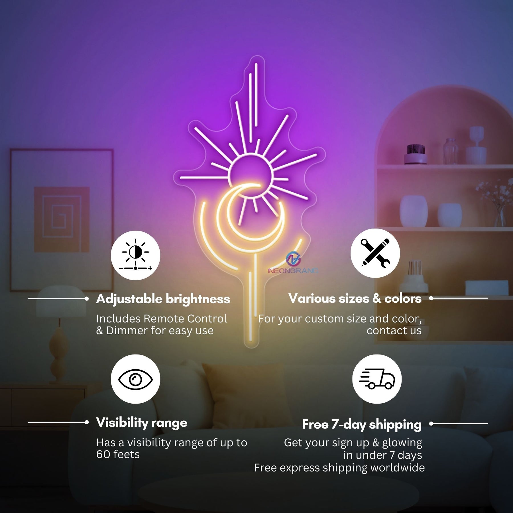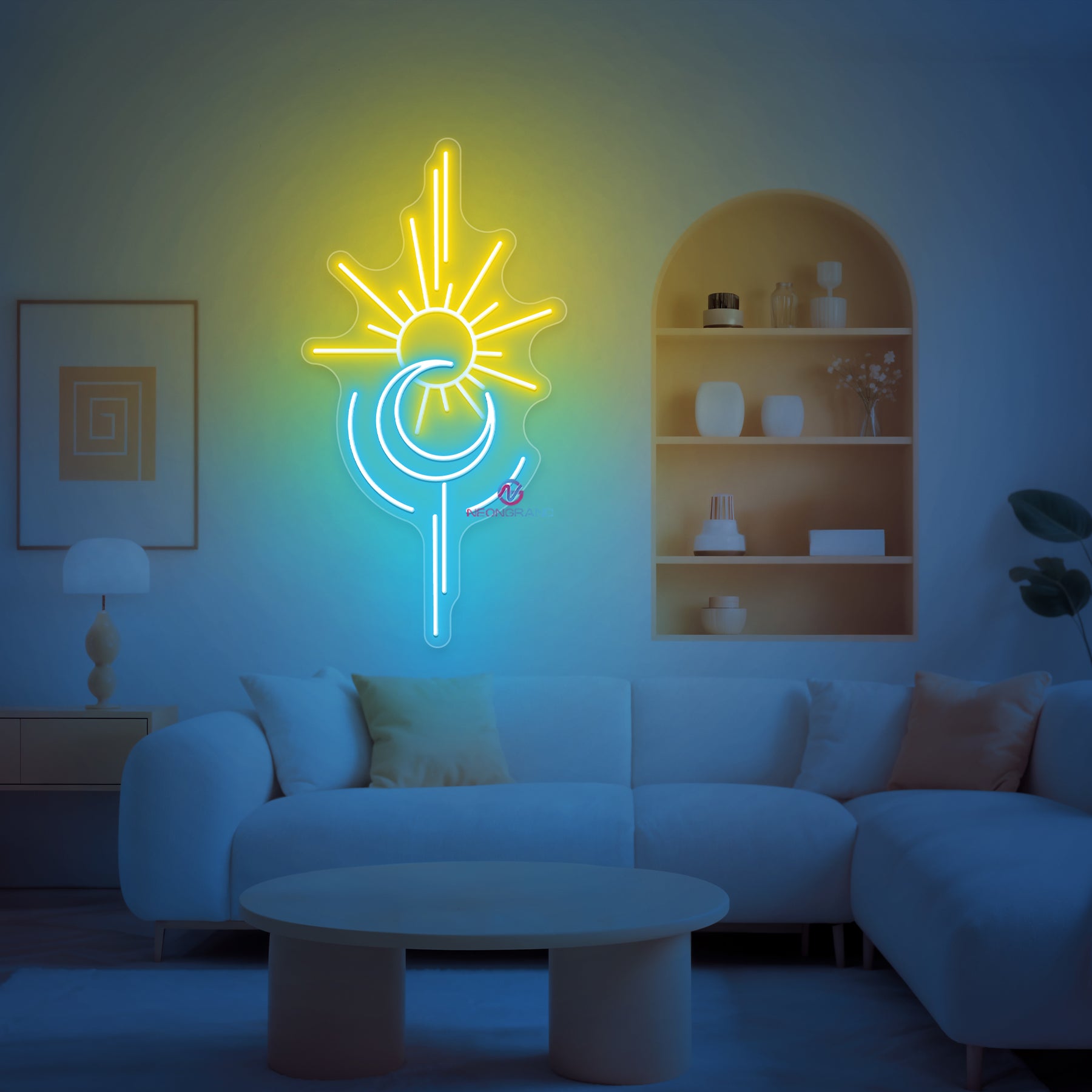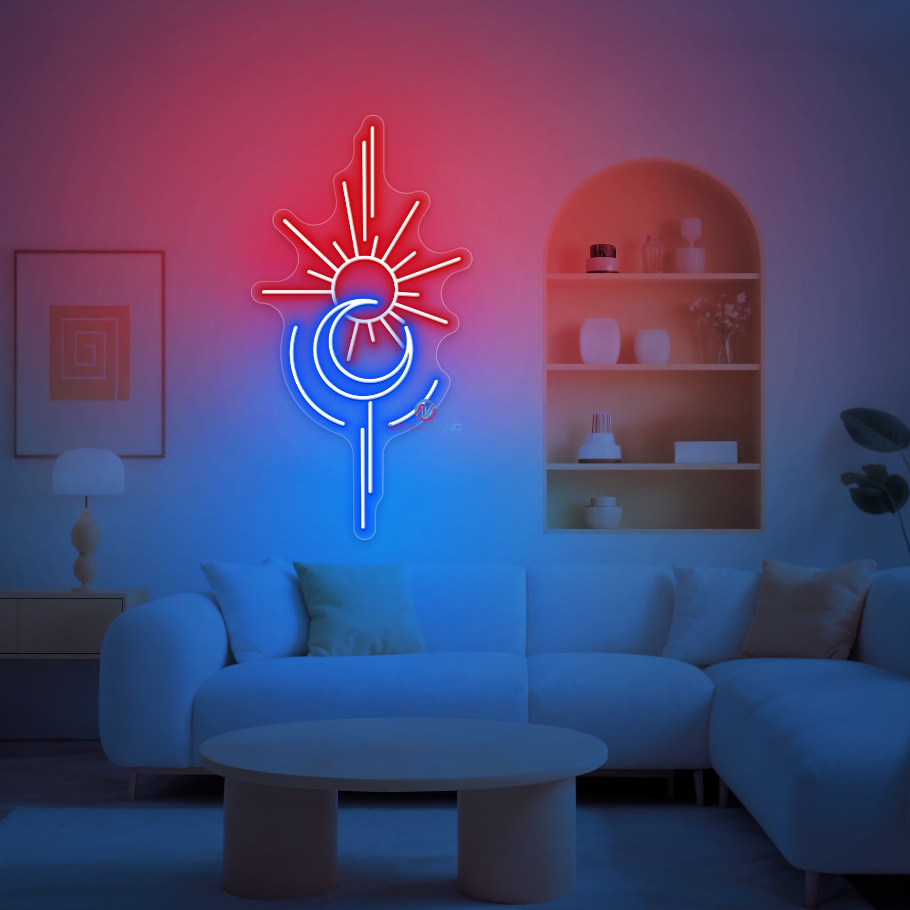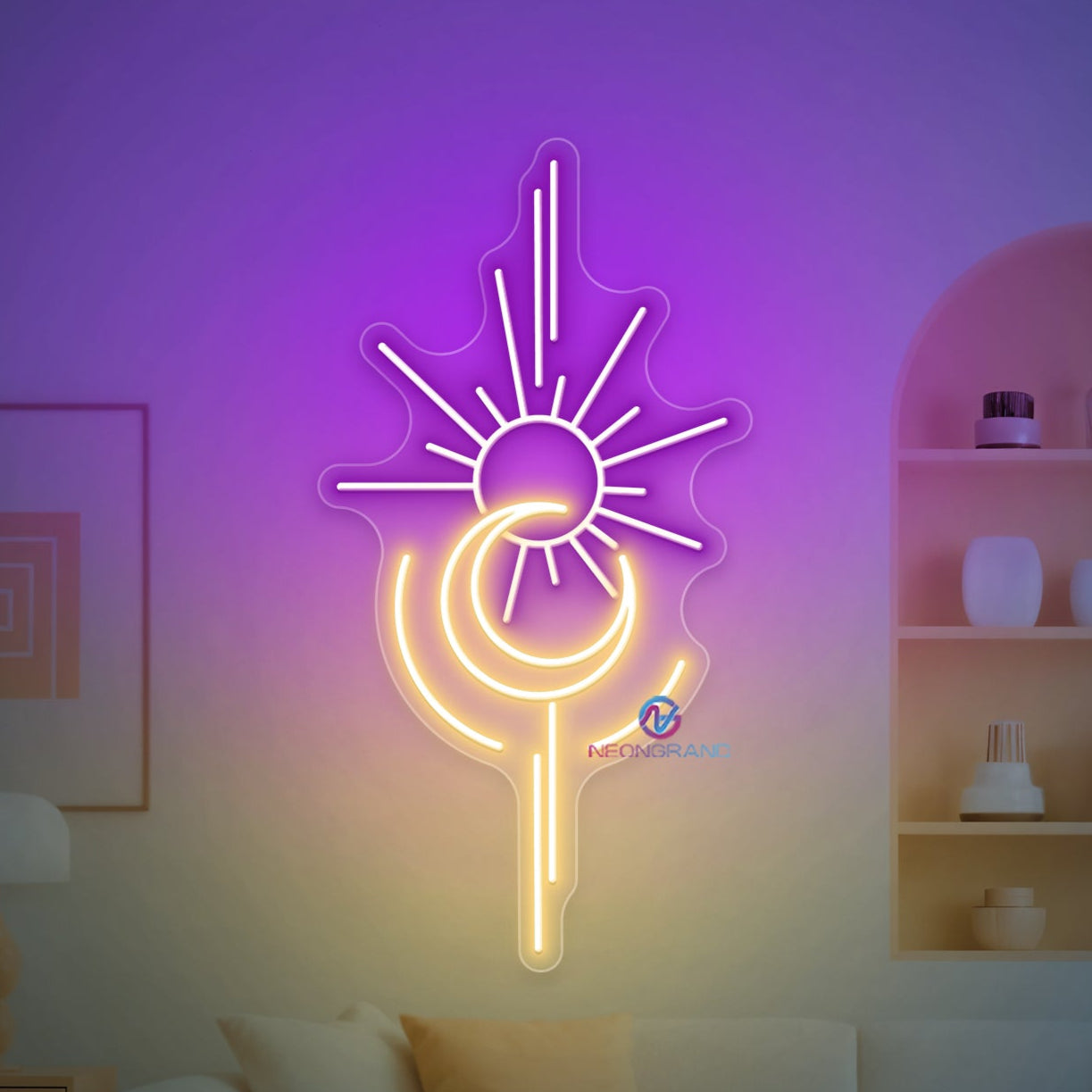 Sun and Moon Neon Sign glows with cosmic balance, blending the warmth of the sun with the mystery of the moon in one radiant design. Its soft yet striking illumination brings harmony and style to bedrooms, lounges, studios, or any space that embraces celestial beauty. Perfect as both décor and mood lighting, the Sun and Moon Neon Sign adds a touch of magic to your world - day or night.