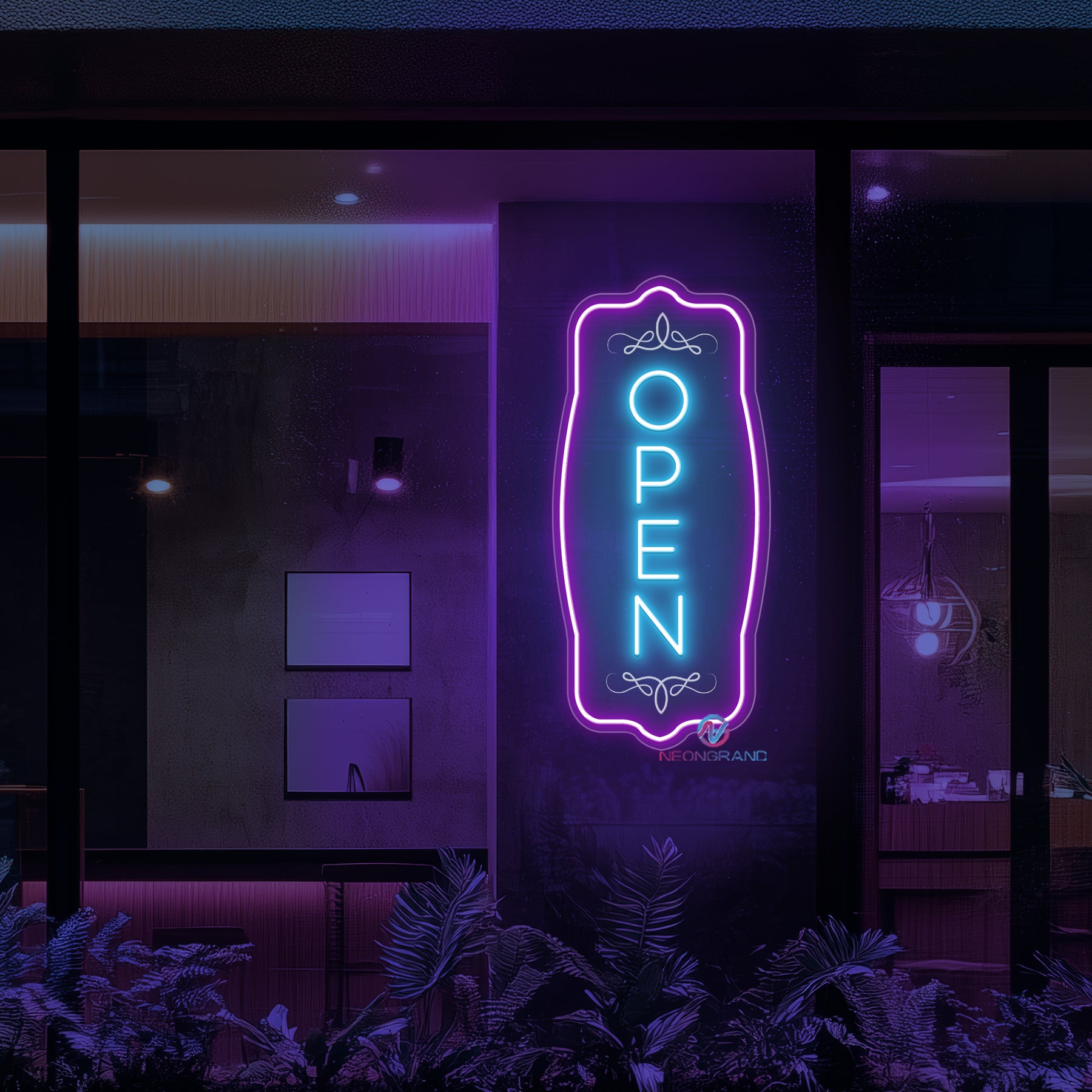 Vertical Vintage Open Neon Sign shines with timeless charm, featuring a tall retro-inspired design that instantly elevates any storefront. Its classic lettering and elongated layout make it perfect for narrow entrances, small shops, or spaces that want to stand out with old-school appeal. Blending nostalgic character with a clean, inviting glow, the Vertical Vintage Open Neon Sign adds personality and a welcoming touch to cafés, boutiques, salons, and artisan stores alike. Light it up and let your business greet customers with vintage flair.