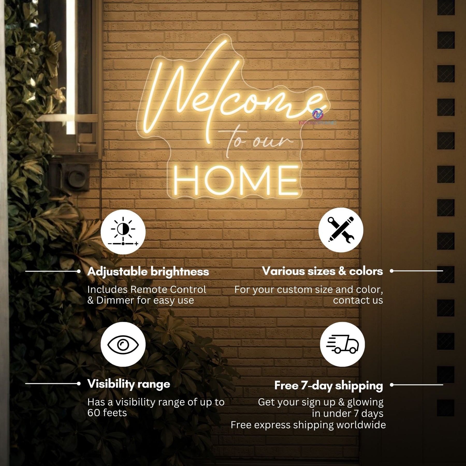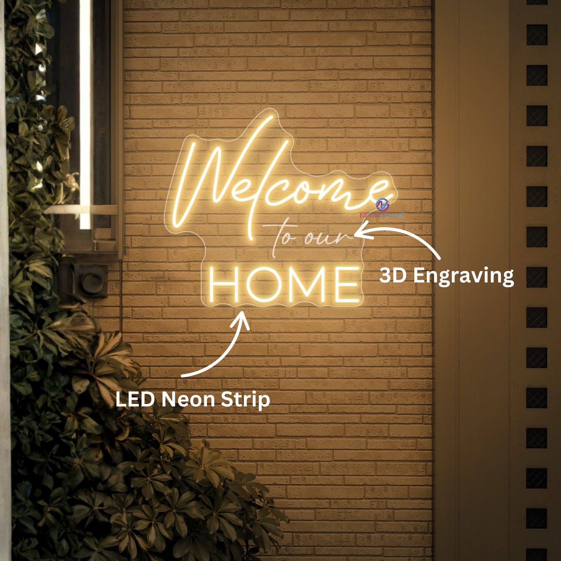 Welcome Home Neon Sign glows with heartfelt warmth, featuring soft, flowing script and a unique 3D-engraved “to our” detail that adds depth and charm. Perfect for entryways, living rooms, or housewarming gifts, it brings a cozy, inviting glow that instantly makes any space feel like home. With its gentle light and thoughtful design, this Inspirational Neon Sign turns every arrival into a warm embrace. Light it up and let your home shine with love and welcome.